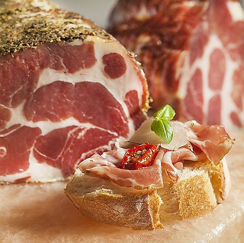 Deze spiering werd licht gezouten en op artisanale wijze gedroogd tot de perfecte Coppa. Door zijn eenvoud haalt hij veel body en kracht. Hij werd 12 weken gerijpt en is ideaal voor bij het aperitief, als beleg maar ook in allerlei gerechten.