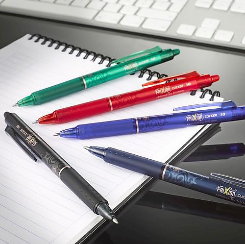 In 2007 werd de schrijfwarenmarkt volledig op stelten gezet. Pilot kwam uit met een revolutionaire pen: FriXion. De kracht van FriXion schuilt in de door Pilot gepatenteerde technologie van warmtegevoelige inkt, waardoor je kunt uitwissen wat je hebt geschreven zonder gom restanten achter te laten, zonder je papier te beschadigen en dus in alle eenvoud en netheid. Maak je een fout? Wrijf met het rubberen einde van je pen je tekst en de inkt verdwijnt. Jaar na jaar werkt Pilot aan de uitbreidingen van de FriXion familie. De laatste nieuwe telg in de familie is de FriXion Fineliner. De eerste uitwisbare fineliner op de markt. In de huidige maatschappij is herbruikbaarheid steeds belangrijker en daarom zijn de FriXion pennen ook navulbaar. Vullingen zijn beschikbaar per drie maar sinds enkele jaren ook in family pack van 6 voor de grootverbruikers!Ook qua penpunten wordt heel de tijd op de markt ingespeeld. Zo bestaan er nu penpunten van 0.25 mm schrijfbreedte (=0.5 mm penpunt) tot 0.5 mm schrijfbreedte (=1.0 mm penpunt). Voor meer informatie, kan u steeds bij Pilot terecht, of op de nieuwe FriXion website: pilot-frixion.eu.